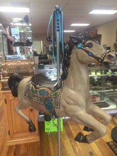 Designed and created by local artist, highly detailed and finely crafted. Only five horses created by artist, two available currently : tan horse as shown and black horse available. Each horse comes with specialized stand crafted with authentic horseshoes. Is collectible item, not meant for play. Due to size of artwork, call for shipping arrangements.